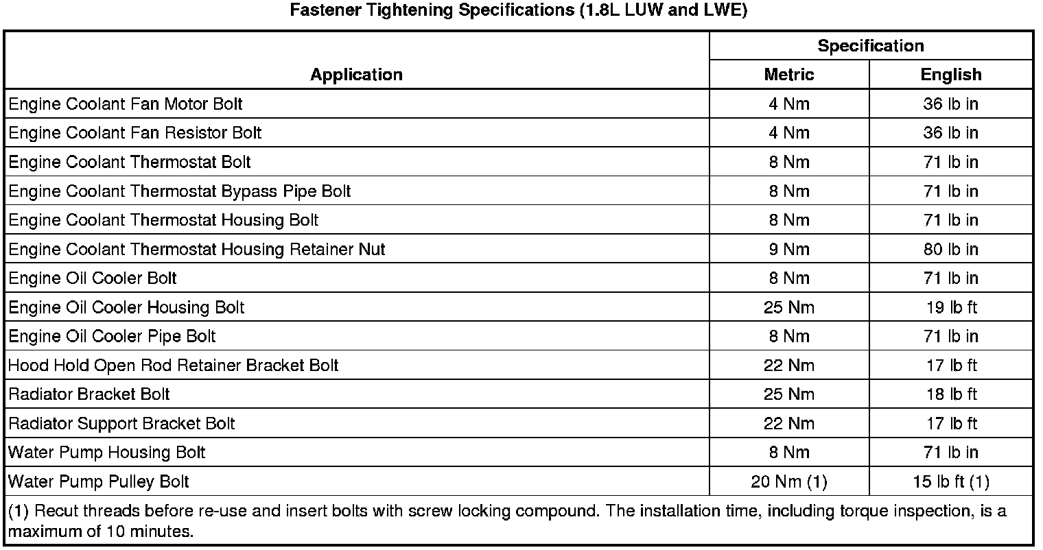 Fastener Tightening Specifications (1.8L LUW and LWE)