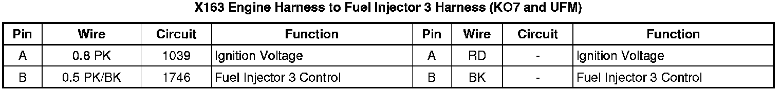 X163 Engine Harness to Fuel Injector 3 Harness (KO7 and UFM)