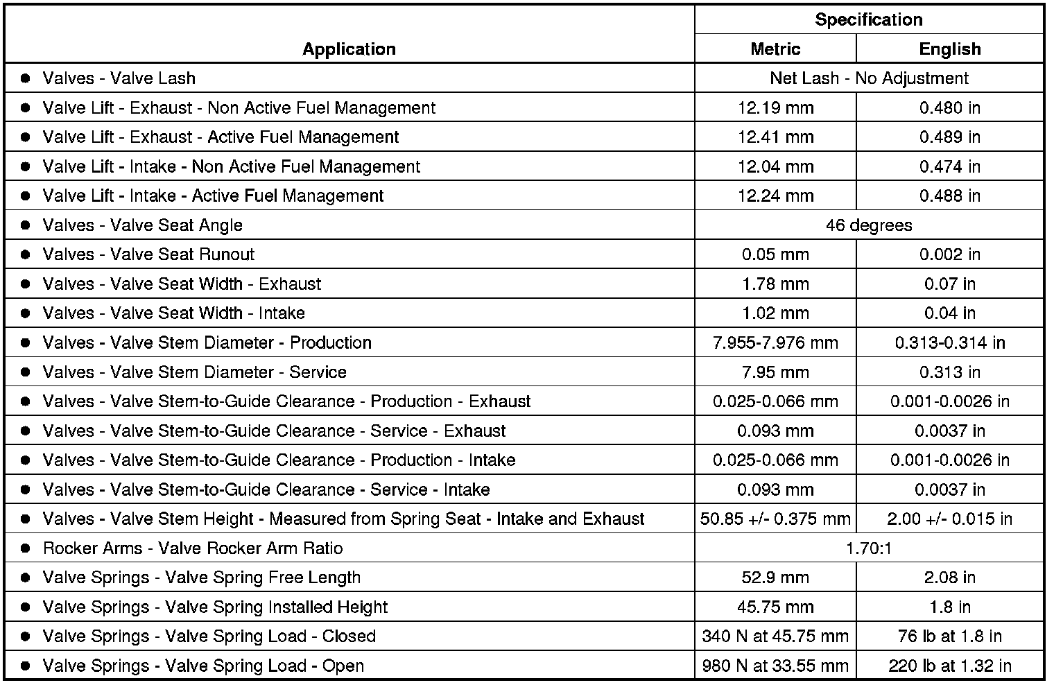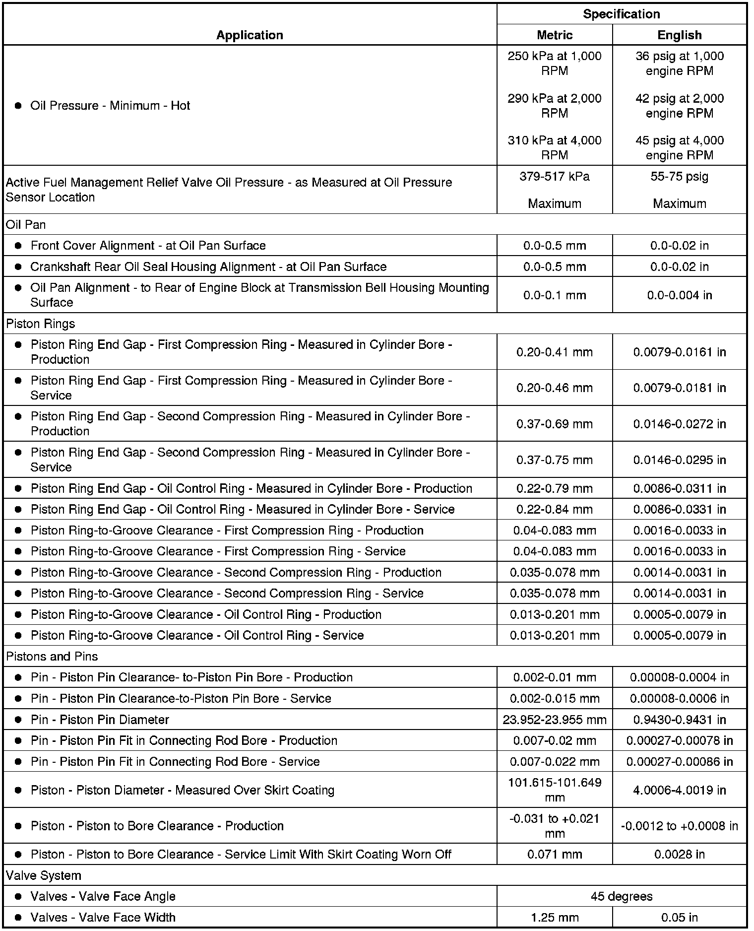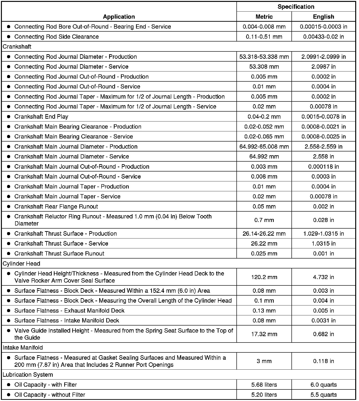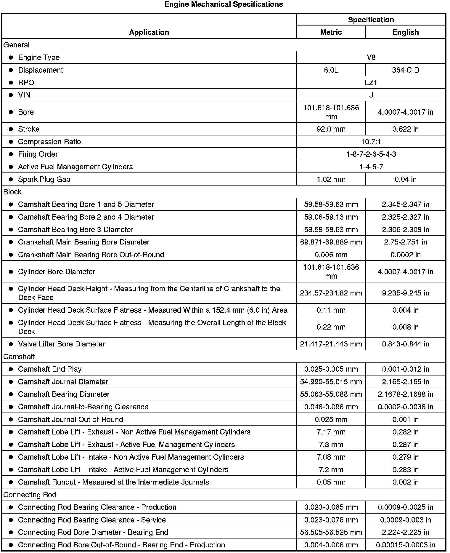 Engine Mechanical Specifications