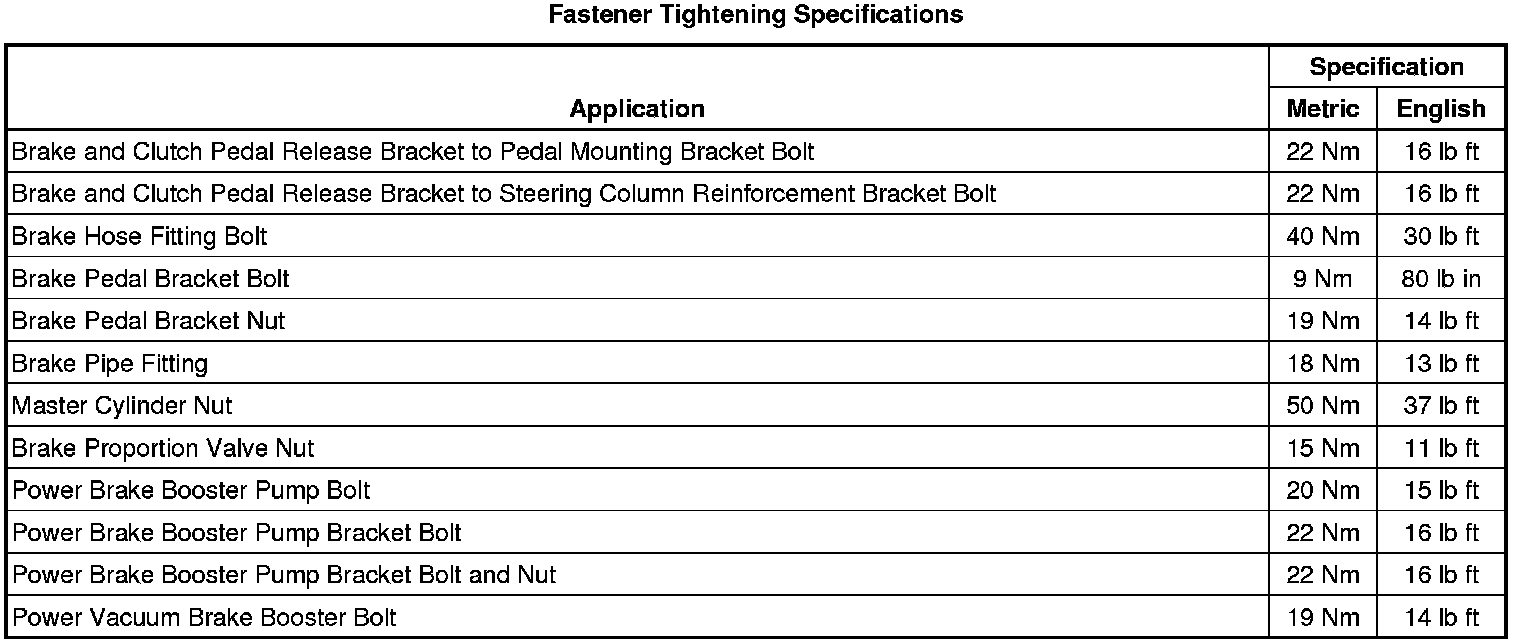 Fastener Tightening Specifications