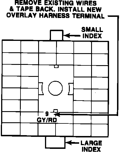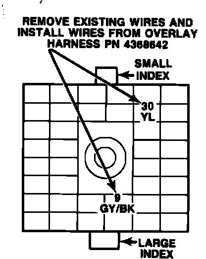 9A. Insert the two bare terminals of the overlay harness, PN 4368597, into the 2 X 5 way wedge connector as follows (Figure 3-D).