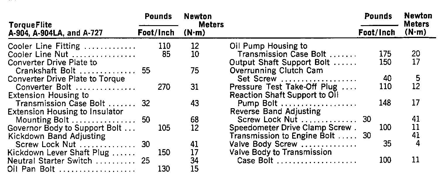 Loadflite A-904, A-904LA, A-727 Transmissions