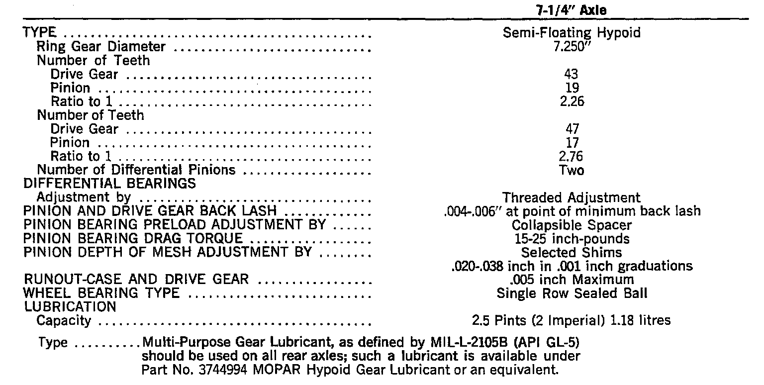 7-1/4" Axle Specifications: