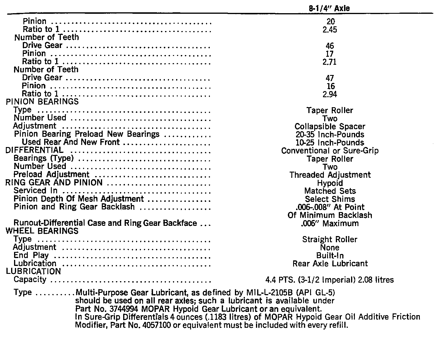 8-1/4" Axle Specifications: