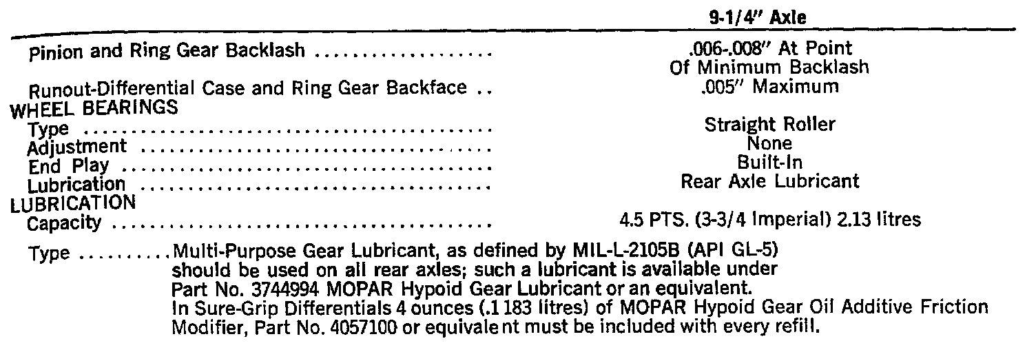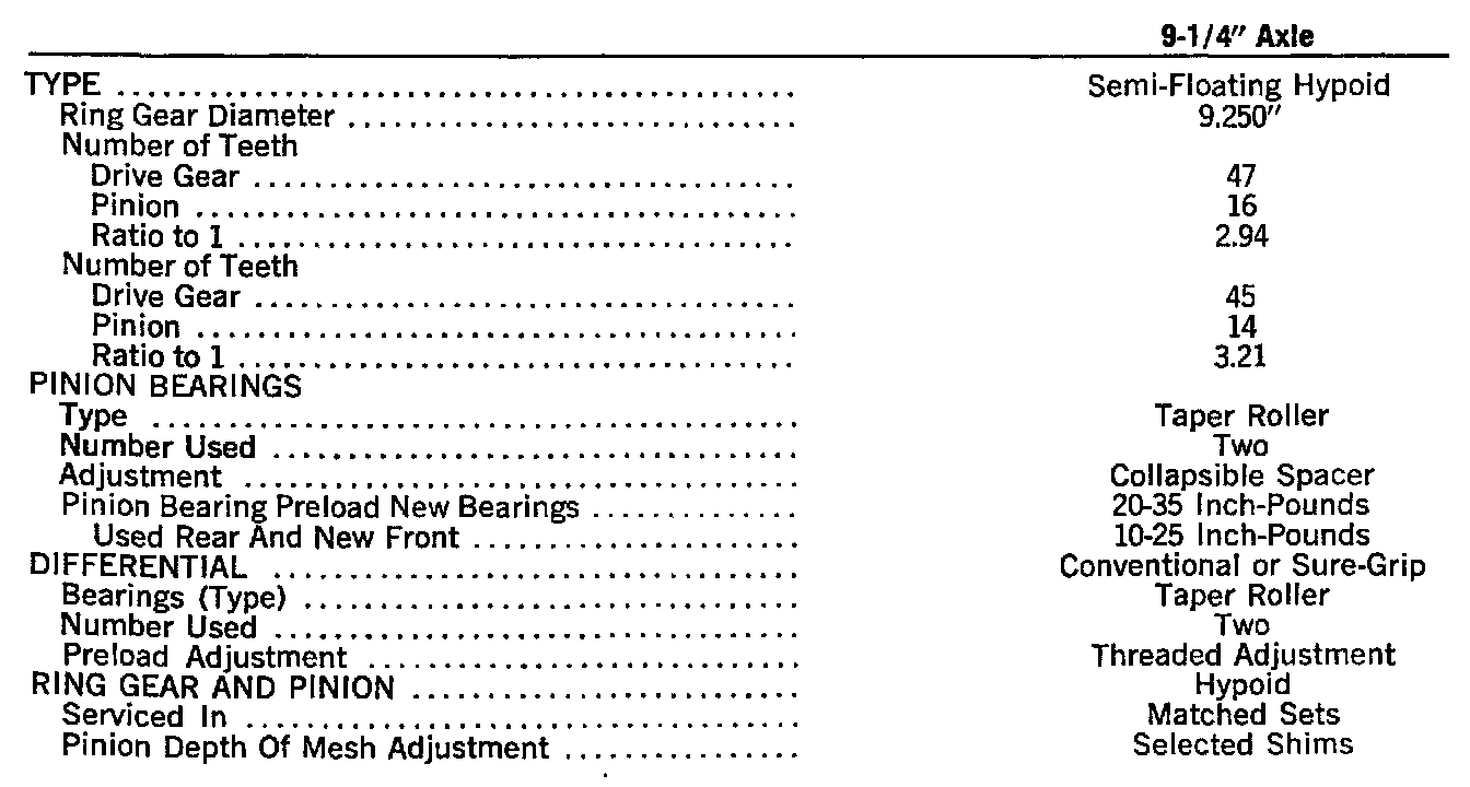 9-1/4" Axle Specifications: