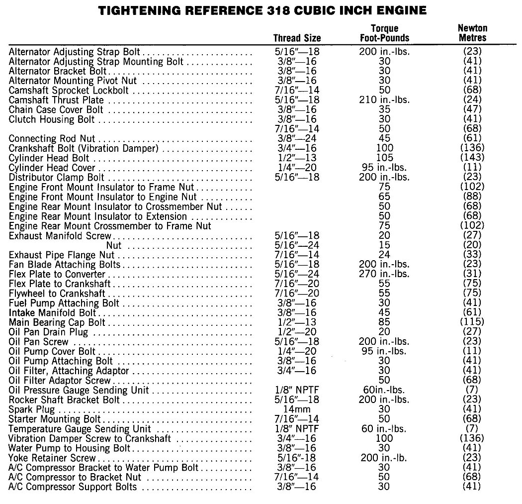 Fifth Avenue V8-318 5.2L VIN P 2-bbl