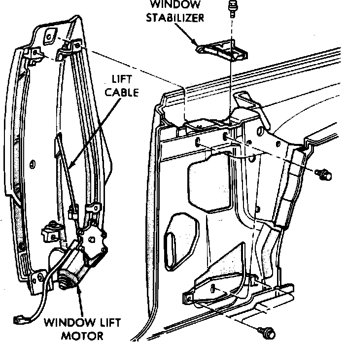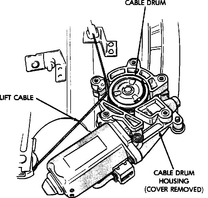 [1] Extreme caution should be used when working with any regulator that has a counterbalance spring. If the window is not secured in the "full up" position, removal of the power window motor will allow the counterbalance spring to move the sector gear very quickly. This could result in either personal injury or damage to the vehicle.