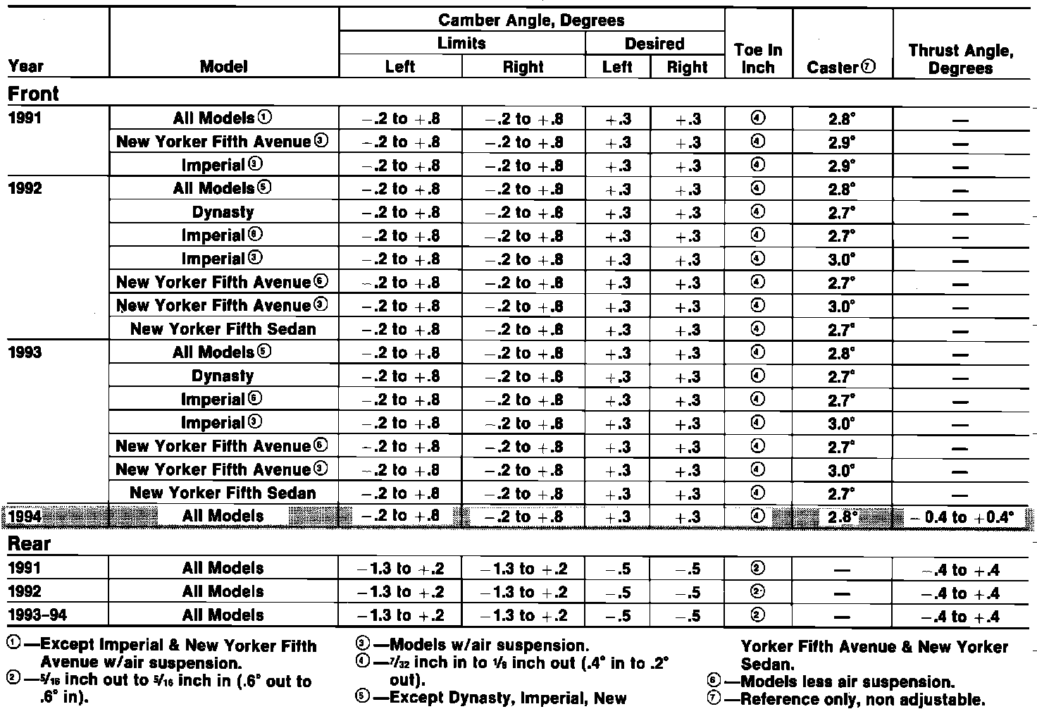 Wheel Alignment Specifications: