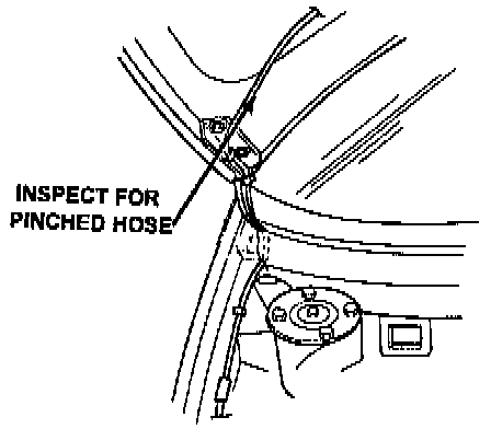 1. Locate the pinched hose near the right hand hood hinge.