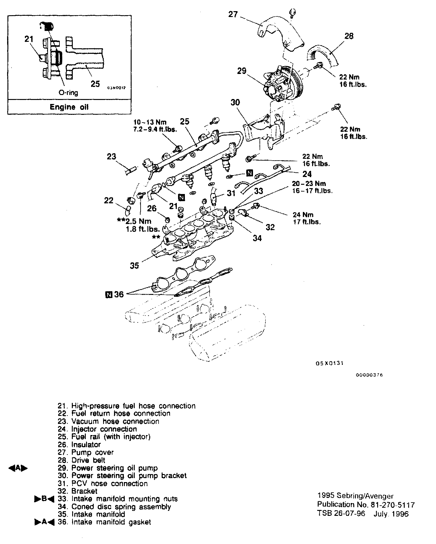 NOTE: Suspend the removed power steering oil pump (by using wire or similar material) at a place where no damage will be caused during removal/installation of the intake manifold.