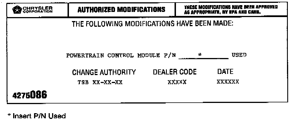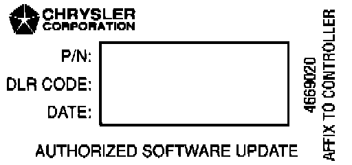 9. Type the necessary information on the "Authorized Software Update Label" P/N 4669020. Attach the label to the PCM and cover the label with the clear plastic overlay.
