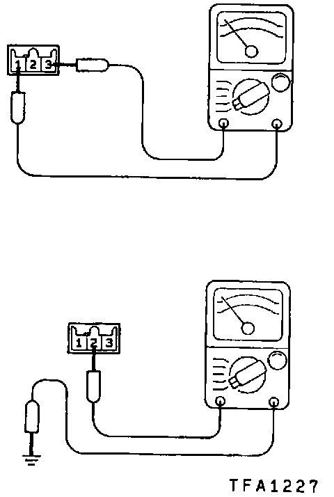 (2) Check the continuity between terminals 1-3 and 2-body ground while shifting the gearshift lever at each position. The continuity between terminals should be as shown in the table.