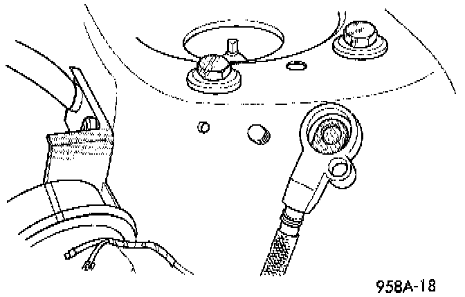 1. Disconnect battery negative cable from remote negative terminal on shock tower.