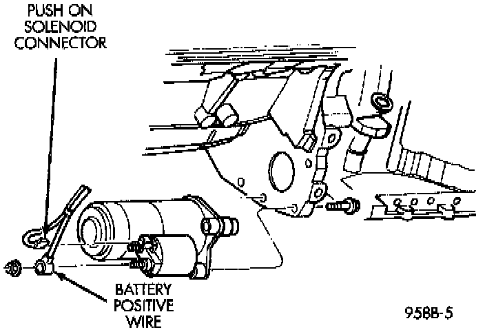 4. Remove battery positive cable nut from starter and remove cable.