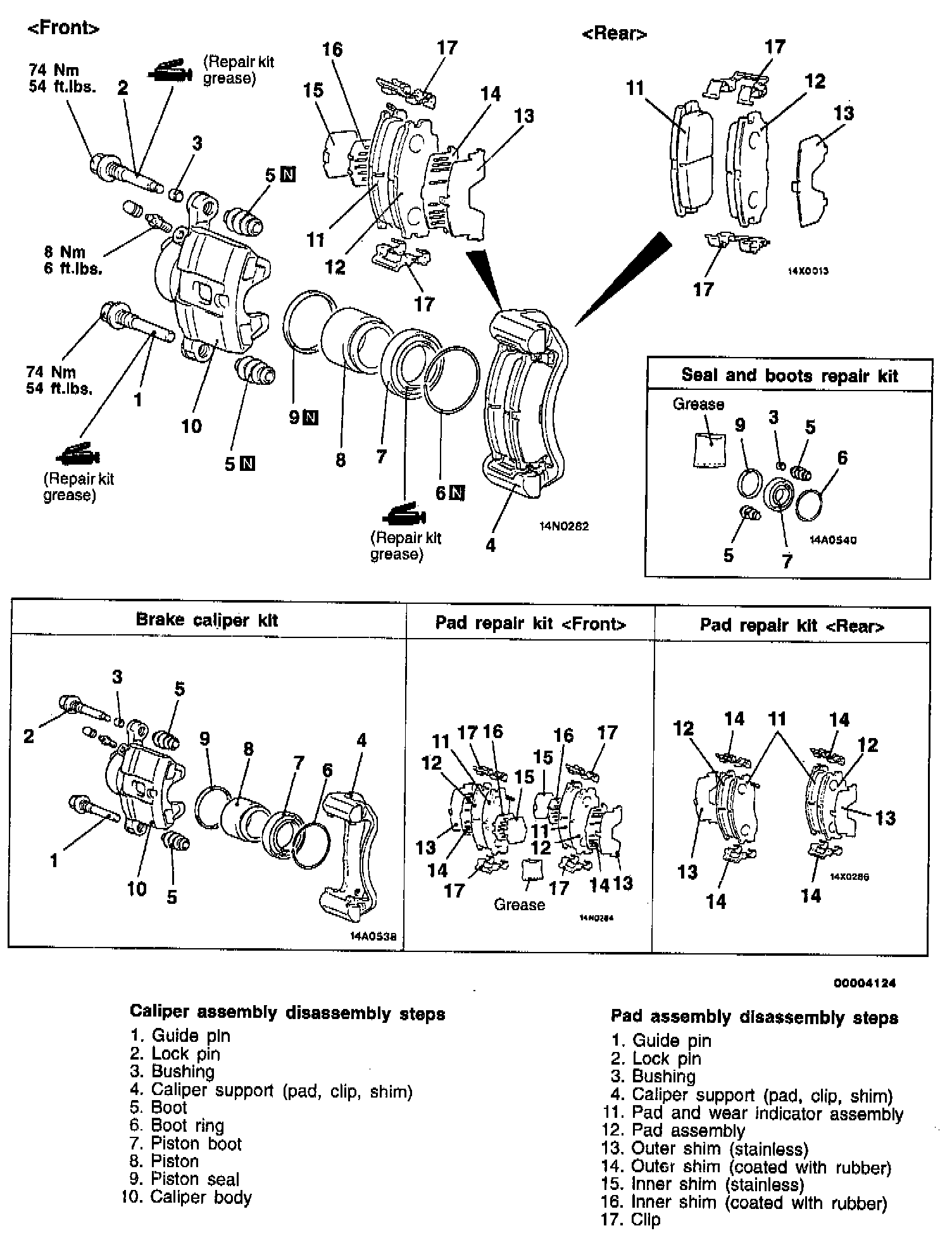 NOTE: When disassembling the disc brakes, disassemble both sides (left and right) as a set.