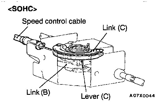 Hold the link C at the position where the lever C touches the link B. Then secure the speed control cable.
