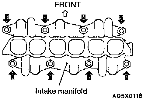 3. Tighten the intake manifold mounting nuts one bank after the other by the following procedure.