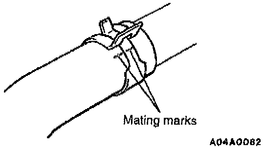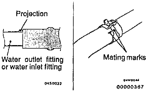 4. Align the mating marks on the radiator hose and water outlet fitting or water inlet fitting.