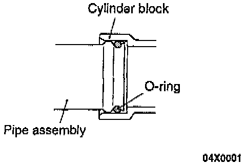 2. Insert the O-ring to the pipe assembly, and coat the outer circumference of the O-ring with water or engine coolant.