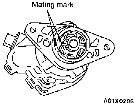 6. Align the mating mark on the distributor housing and the coupling. Install the distributor.