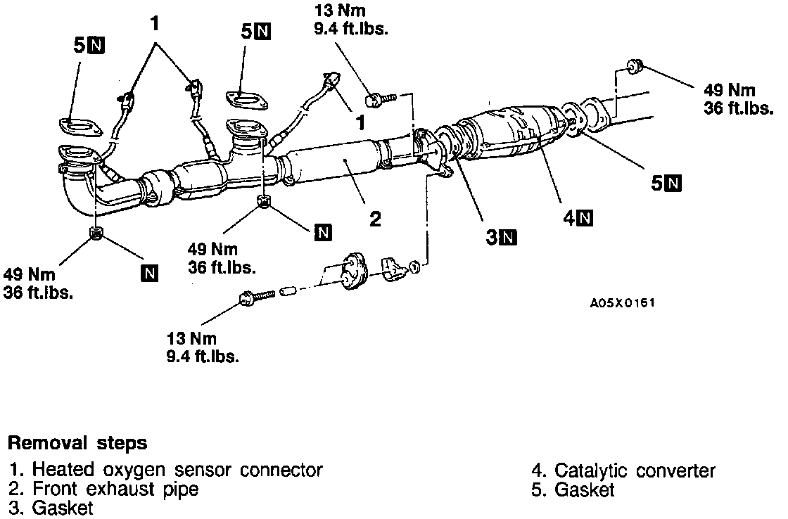 Inspect for damage, cracking or deterioration. Replace the catalytic converter if obvious damage is found.
