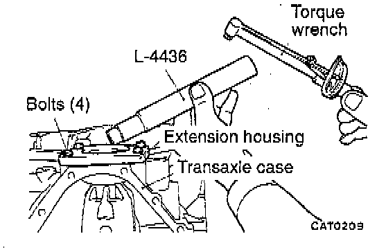 18. Install extension housing into the case and torque bolts to 28 Nm (20 ft. lbs.).