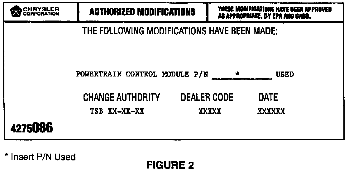 9. Type the necessary information on the "Authorized Software Update Label" p/n 04669020 (Figure 1). Attach the label to the PCM and cover the label with the clear plastic overlay.