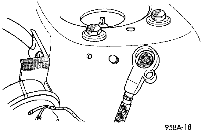 1. Disconnect battery negative cable from remote negative terminal on shock tower.