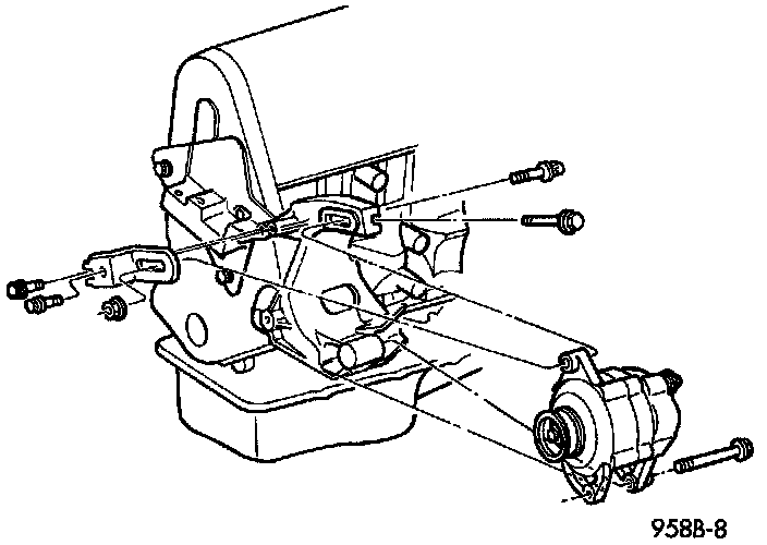 7. Loosen adjusting bolt to allow removal of the generator drive belt.