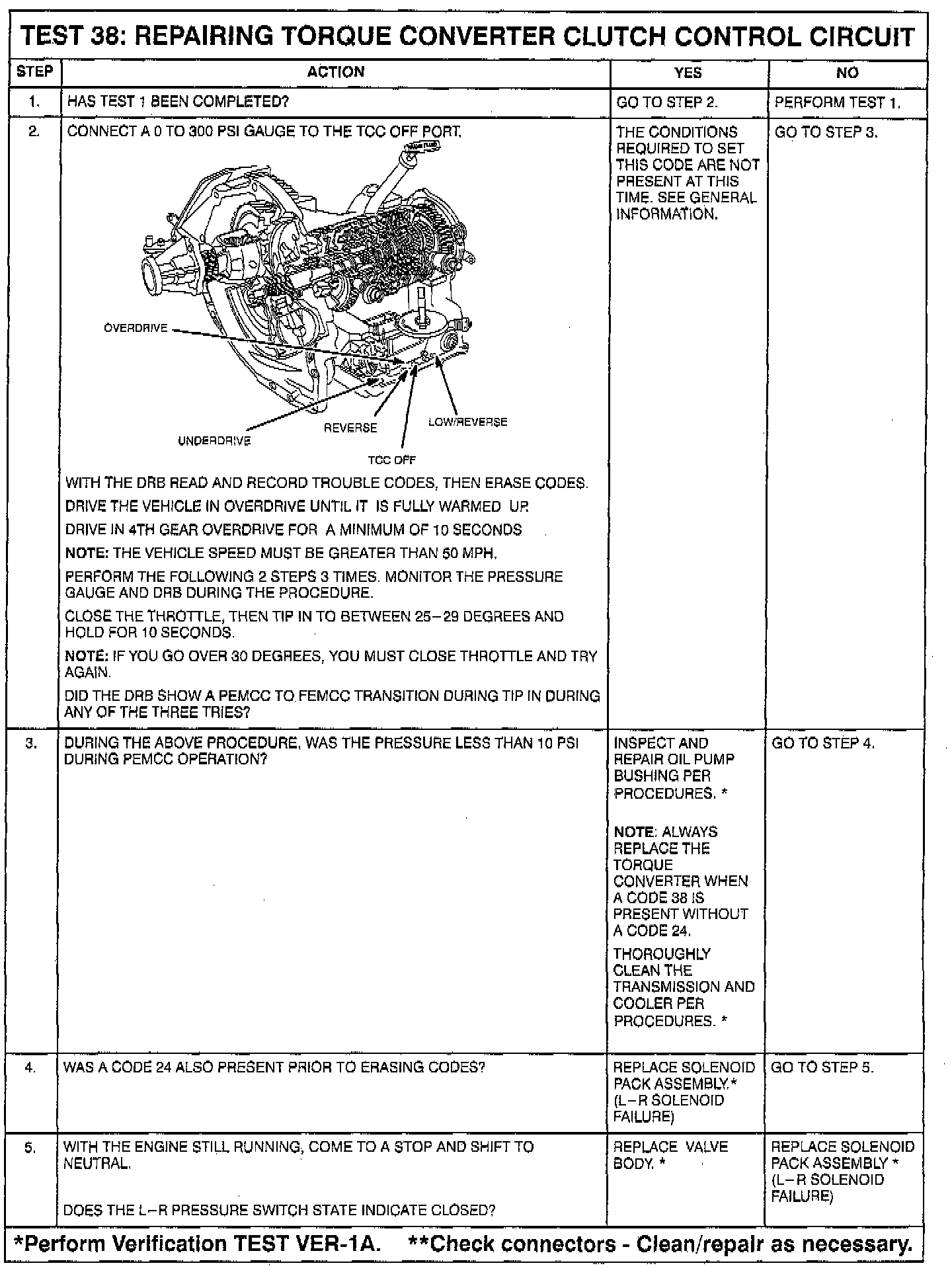 a. The transmission must be in PEMCC, with the input speed greater than 1750 RPM. The TCC/L-R solenoid must achieve it's maximum duty cycle and still not be able to pull the engine speed within 60 RPM of input speed.