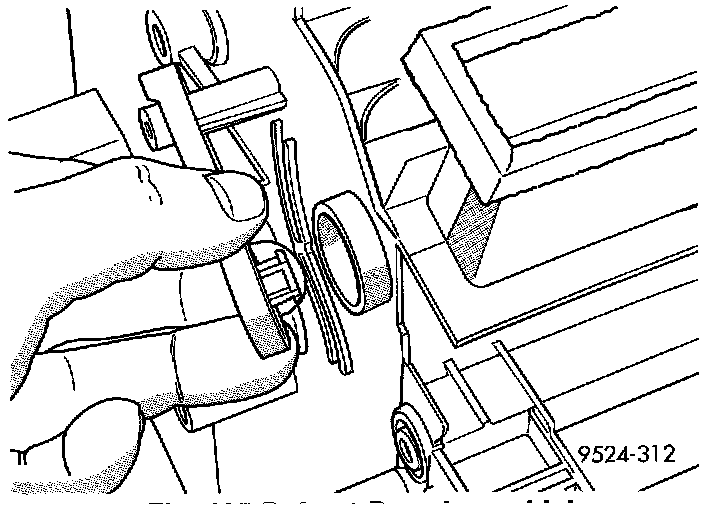 38. Depress retaining clip at temperature control door, remove temperature control door.