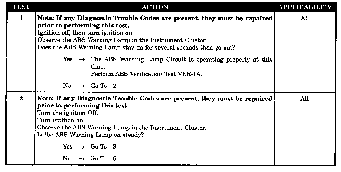 ABS WARNING LAMP DEFECTIVE