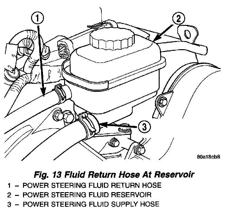 2. Remove power steering fluid return hose from nipple on power steering fluid reservoir.