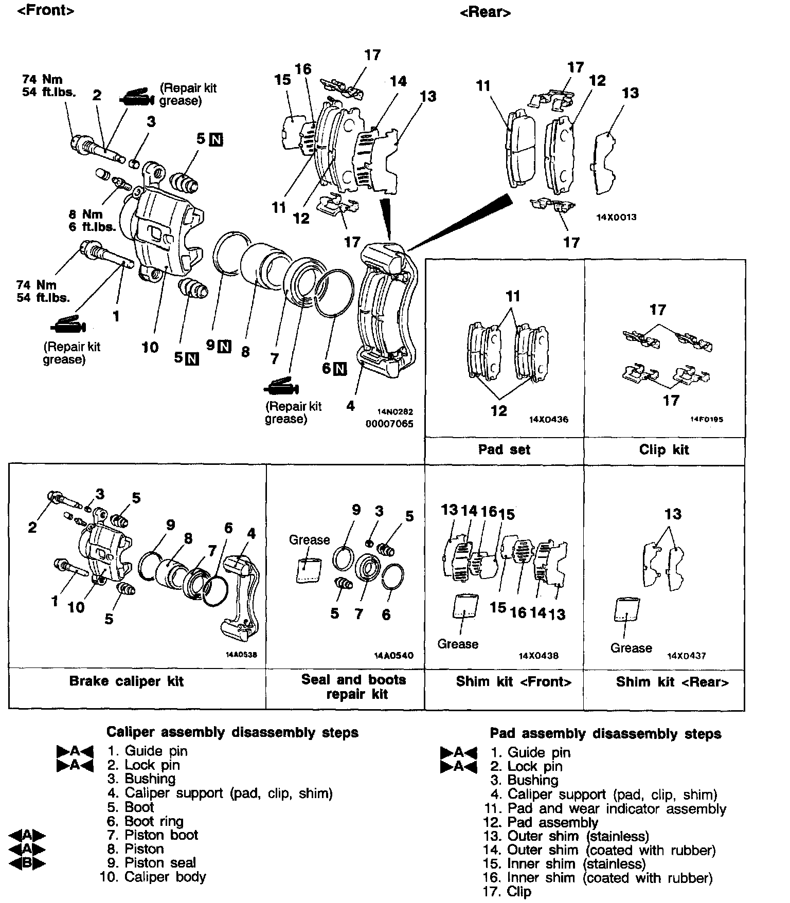 ^ Check pad for damage or adhesion of grease, check backing metal for damage.