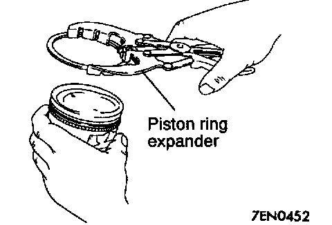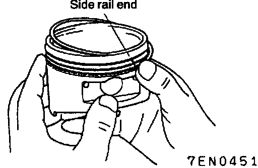 Caution: Use of ring expander to expand the side rail end gap can break the side rail, unlike other piston rings.