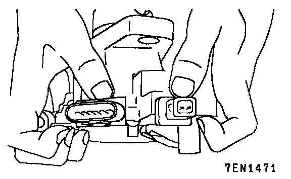 2. Hold the combination of housing and unit and the ignition coil set with right and left hand in parallel with each other as shown in the illustration, remove combination of the housing and unit and the ignition coil set simultaneously so as to push out two connectors evenly from the housing.