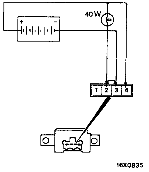 1. Connect the battery and the test light (40 W) as shown in the illustration.