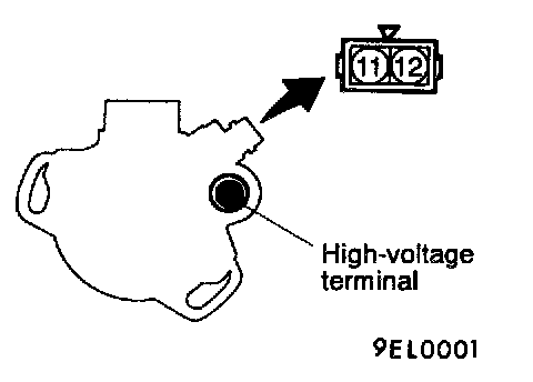 2. Measurement of the secondary coil resistance Measure the resistance between the high-voltage terminal and connector terminal 11.