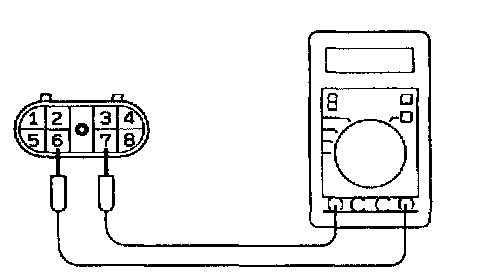 2. Measure the resistance between the solenoid & pressure switch assembly side connector terminals 6 and 7.