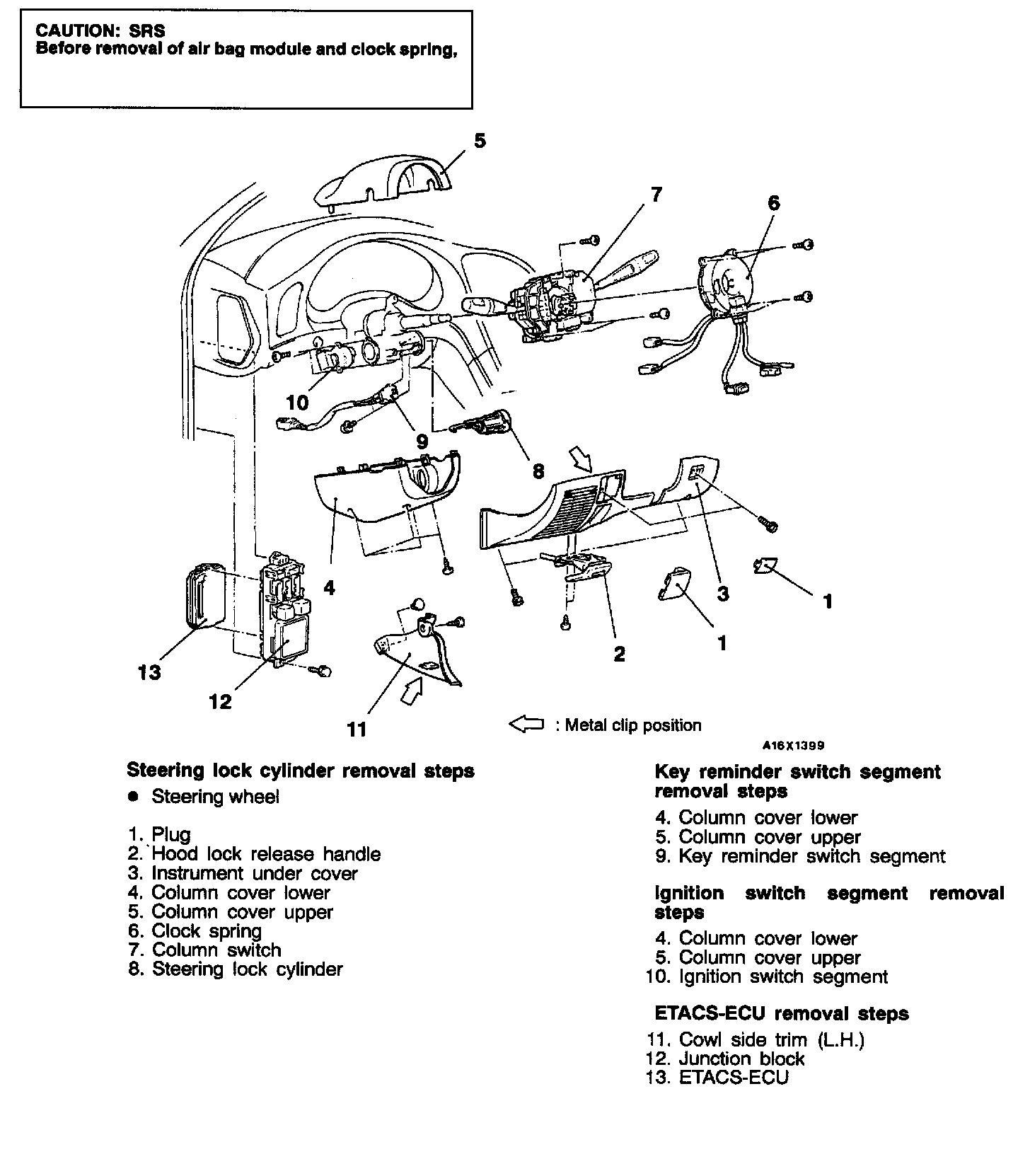 CAUTION: Before removal of air bag module and clock spring, refer to SRS Service Precautions, Air Bag Module and Clock Spring.