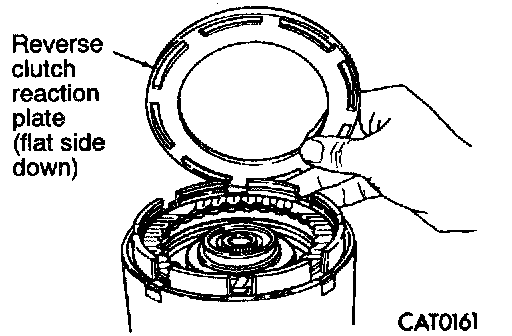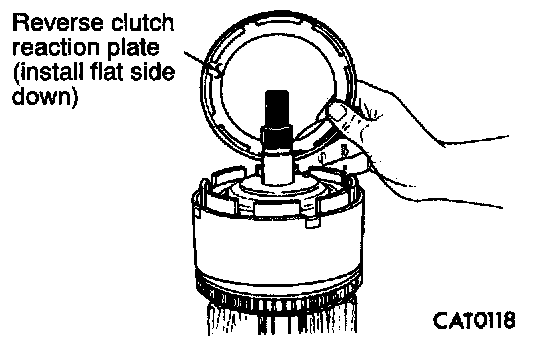 25. Install reverse clutch reaction plate with flat side down.