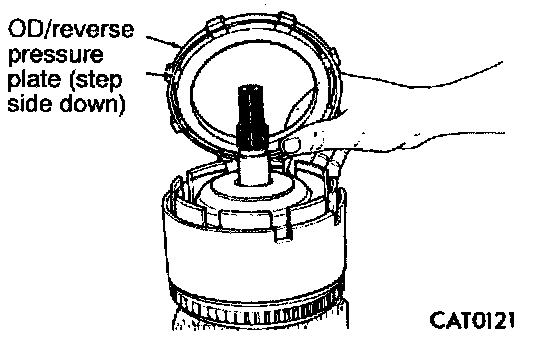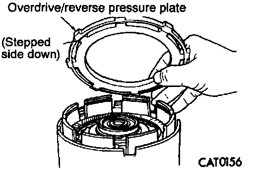 21. Install overdrive/reverse pressure plate with stepped side down.