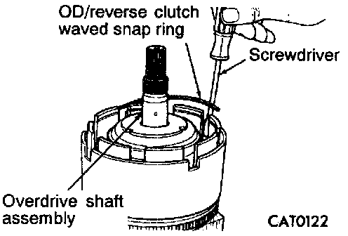 8. Remove overdrive/reverse clutch waved snap ring with a screwdriver.