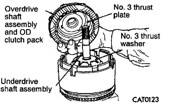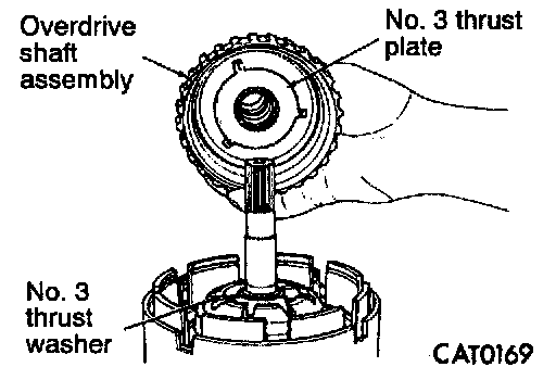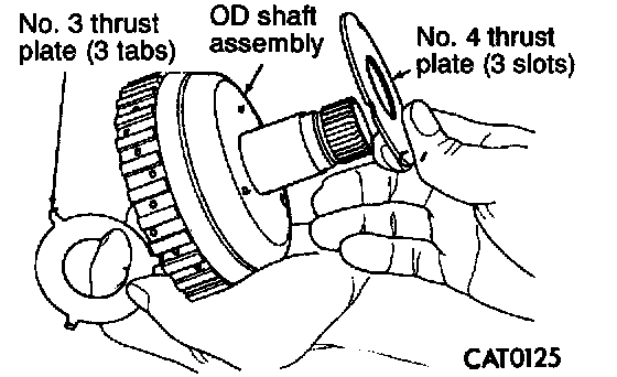 11. Remove No. 3 and No. 4 thrust plates from overdrive shaft assembly.