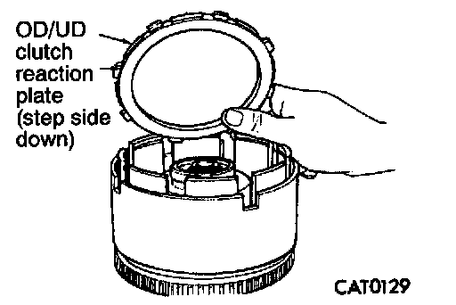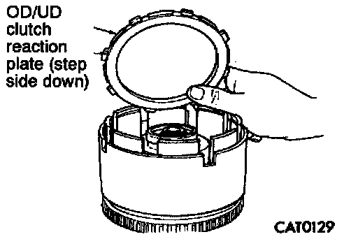 15. Install overdrive/underdrive clutch reaction plate with large stepped side facing down.