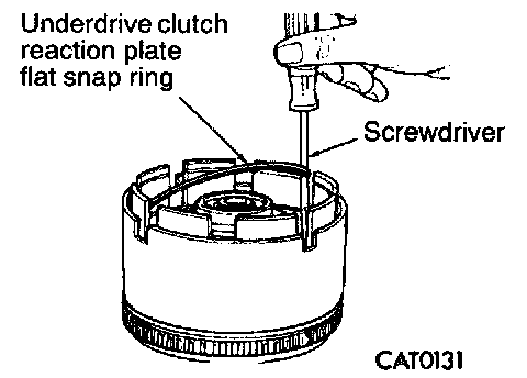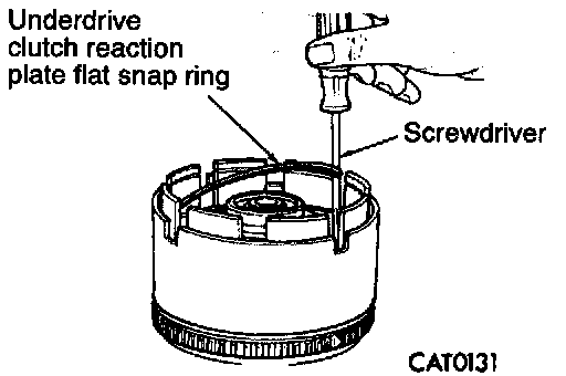 13. Install underdrive clutch reaction plate flat snap ring with a screwdriver.