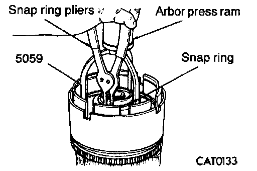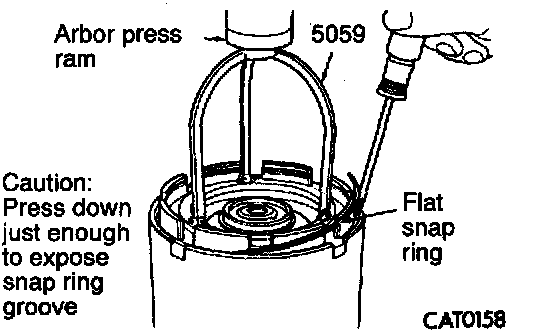 11. While compressing spring with Spring Compressor 5059 and arbor press ram, install snap ring with snap ring pliers.