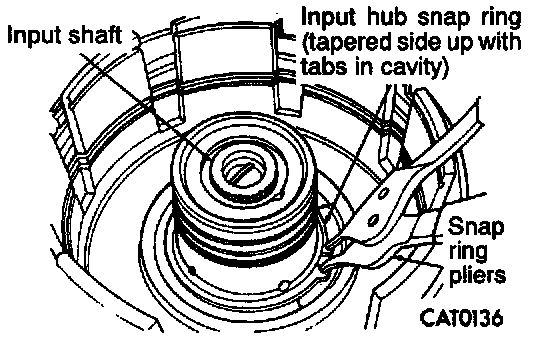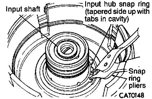 7. Install input hub tapered snap ring with snap ring pliers.