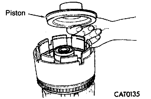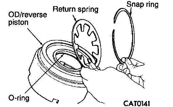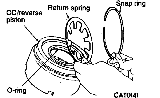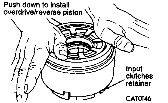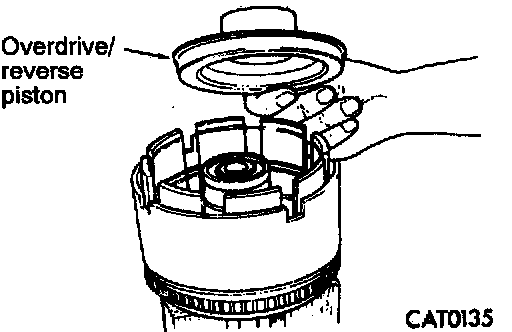 5. Install overdrive/reverse piston by pushing down. Be sure to lubricate reverse piston O-ring and lip seal prior to installation.