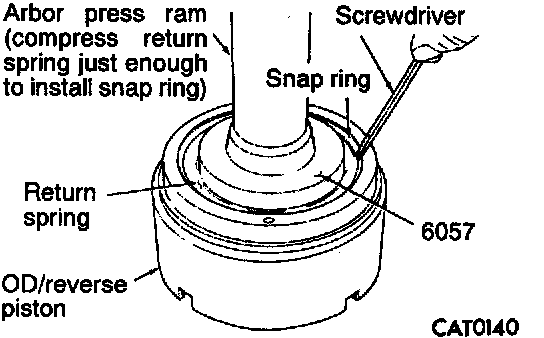 Caution: Compress return spring just enough to install snap ring.